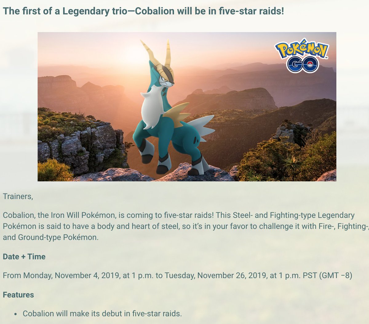 ポケモンgo 第5世代の準伝ポケモン コバルオン が伝説レイドに登場 11月5日 26日 3闘 ポケモンアンテナサイト