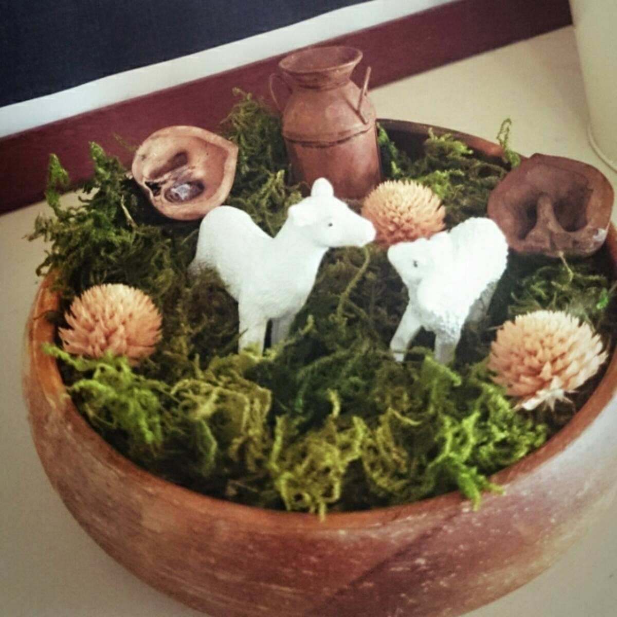 天然居士 なお地面に撒いたパウダーはダイソーの 装飾グリーンモス をすり鉢でおろしたものと 茶漉しで振るった庭土を調合したもの 比率を変えると表情が変わるので便利 このあとグリーンモスの細かい部分を使って苔を表現するつもりです